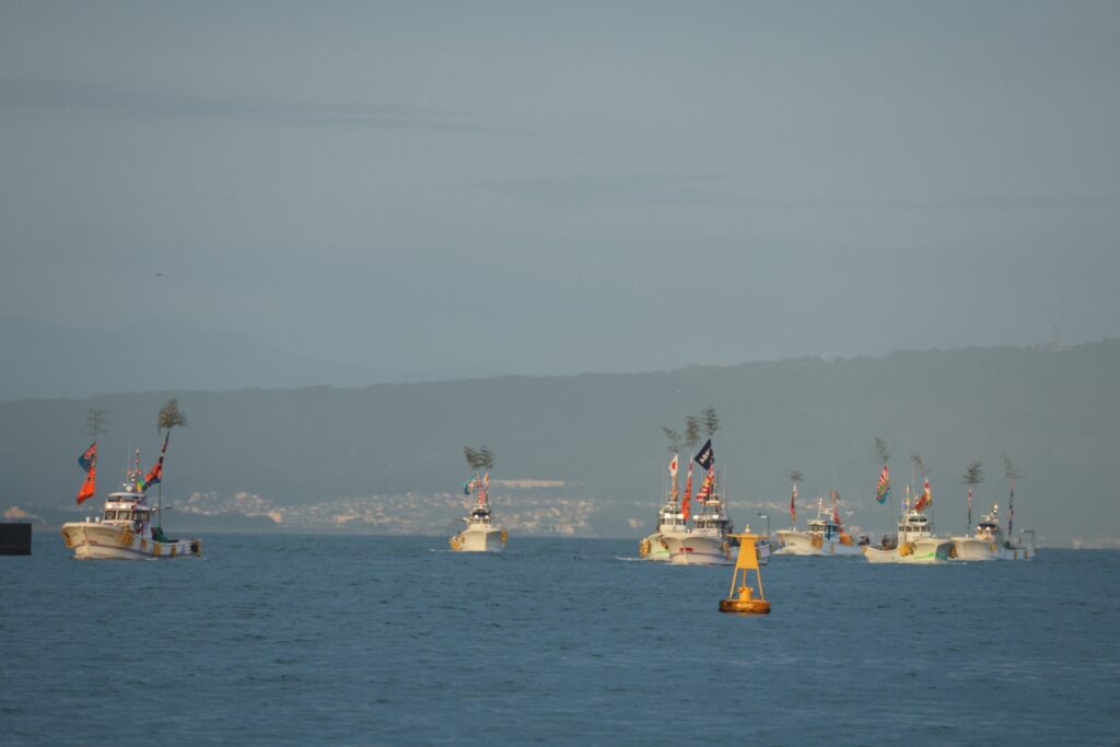 大漁旗を掲げた漁船パレード🚢