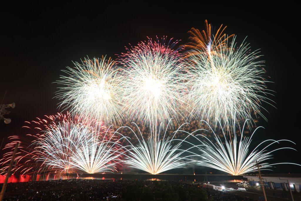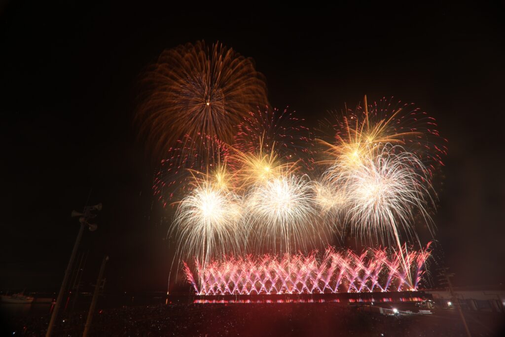 夜空に花が咲いた瞬間、港はひときわ大きな歓声と拍手に包まれました。
