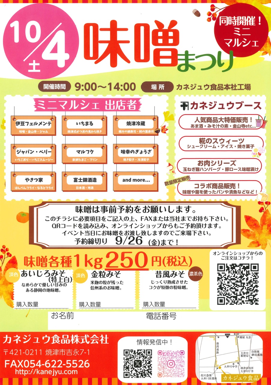 カネジュウ食品 味噌まつり 同時開催!ミニマルシェ